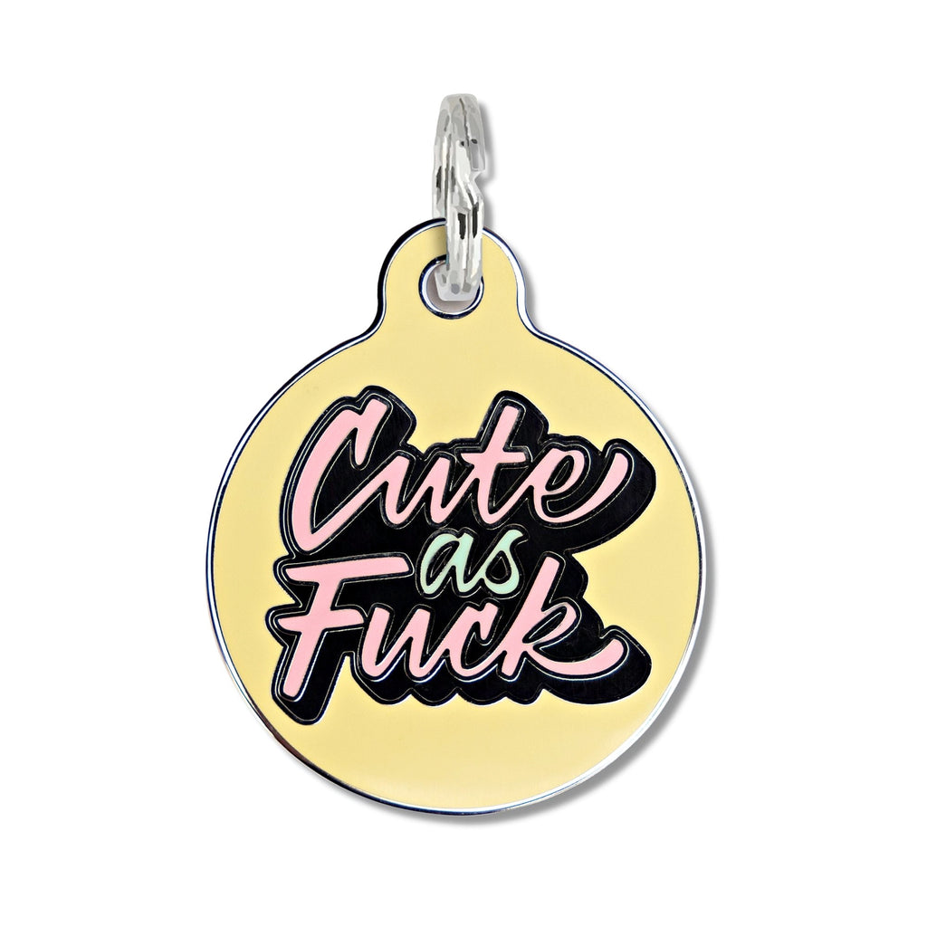 Keep your dog safe with this personalized QR code pet tag. Featuring a free online profile that includes your name, phone number and email address. No app or subscription required! Let your adorable sidekick spill the charm with this cheeky dog tag. Front and center, it flaunts the mantra "Cute as Fuck" – because, let's keep it real, right?