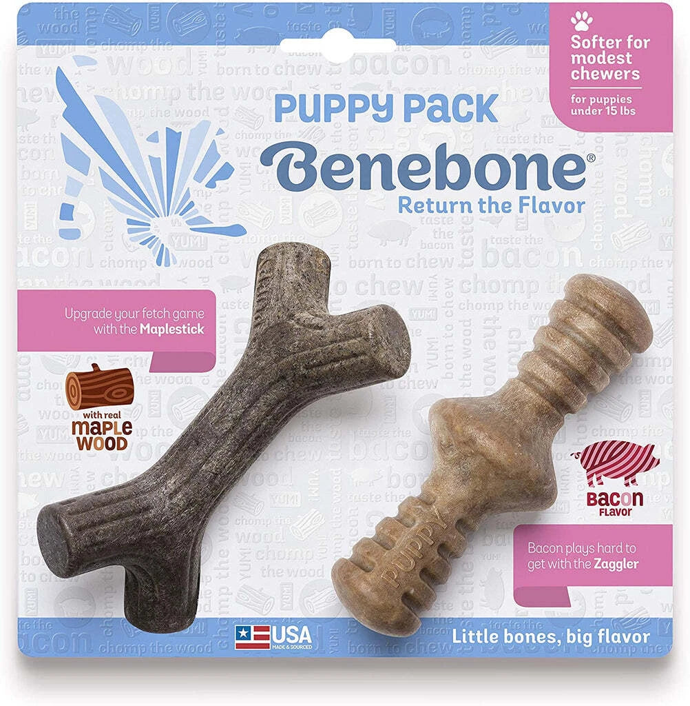 The paw-friendly design allows your pup to get a good grip, while the softer material helps soothe teething.Delivers a wag-worthy flavor from real bacon that’s fused all the way through the chew. Made in the USA, including all packaging, tooling and all material and ingredient sourcing. Benebone is a brand you can feel good about since they are dedicated to the welfare of dogs through community involvement and product donations. Helps satisfy your puppy’s natural urge to chew, promoting relaxation and discouraging chewing on your favorite furniture or shoes.