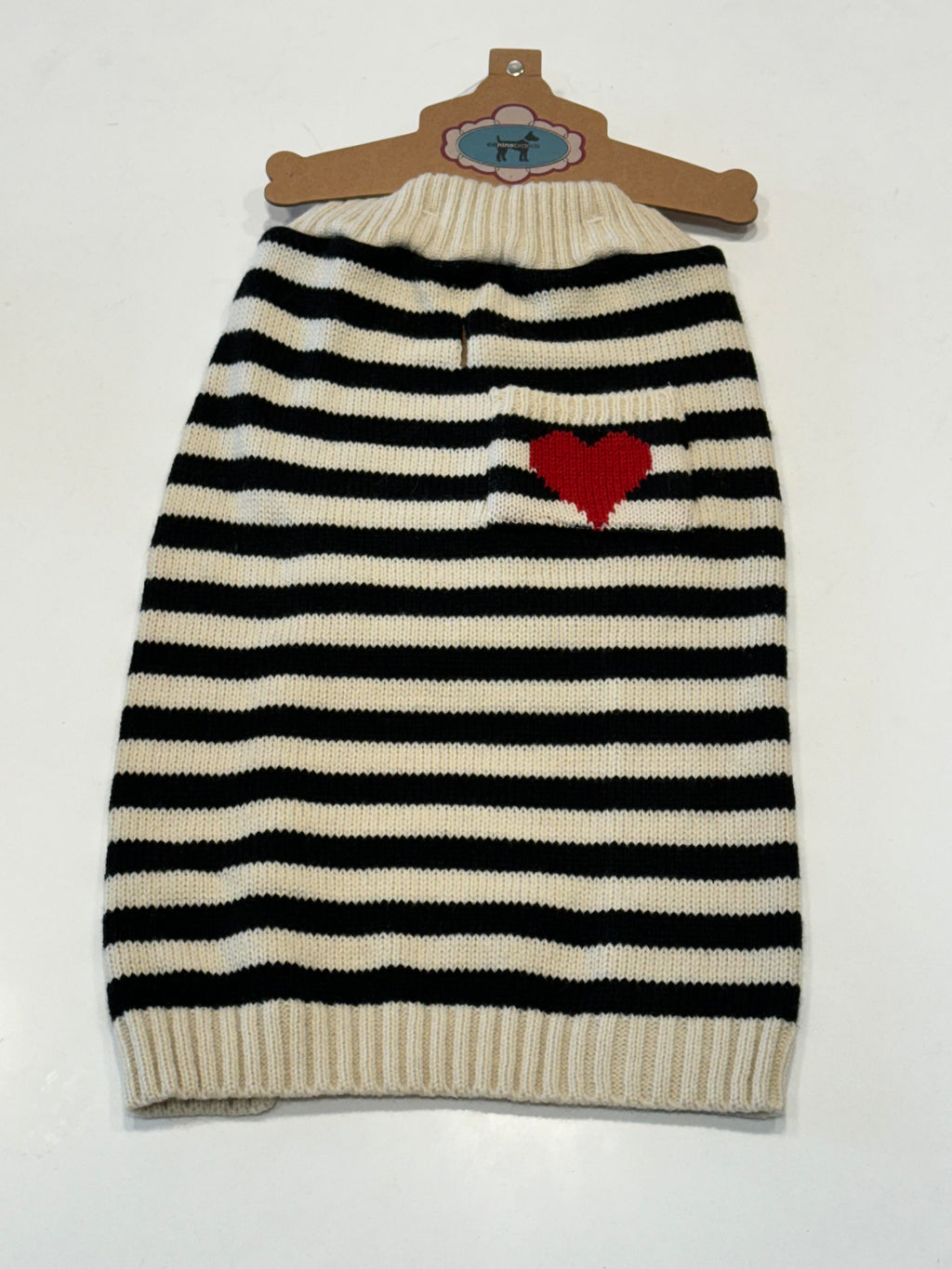 Introducing the perfect way to show off your love for your pup – the Canine Brands Stripped Red Heart Pocket Sweater! This fun and stylish sweater features a black and white striped design with a red heart on the pocket, making it the perfect way to show off your love for your furry friend. Made from a soft and comfortable material, this sweater is sure to keep you warm all season long. Whether you're hitting the town for a walk or just snuggling up at home, this sweater is sure to make you and your pup happy.