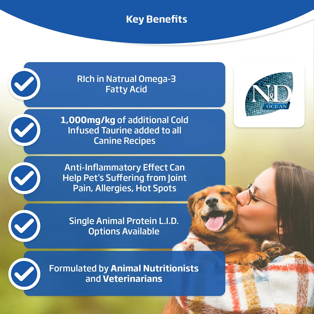 N&D Cod, pumpkin and orange recipe is formulated to meet the nutritional levels established by the AAFCO Dog Food Nutrient Profiles for maintenance.