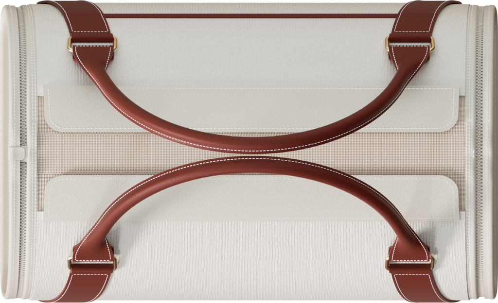 The Fynn Hand Carry style fully opens through both sides for easy wrangling while mesh paneling on the top and sides provide ventilation and visibility. A trolley sleeve allows for the bag to be secured through luggage handles or seatbelts for any airplane or car trips, while a side pocket contains any small items for quick access during travels.
