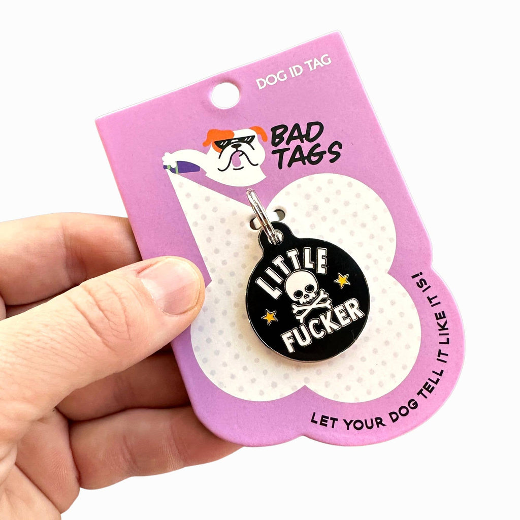 Keep your dog safe with this personalized QR code pet tag. Featuring a free online profile that includes your name, phone number and email address. No app or subscription required! Let your naughty dog tell it like it is with an engraved pet ID tag from Bad Tags. Featuring the saying "Little F*cker" on the frontside, it's sure to bring a laugh and smile!